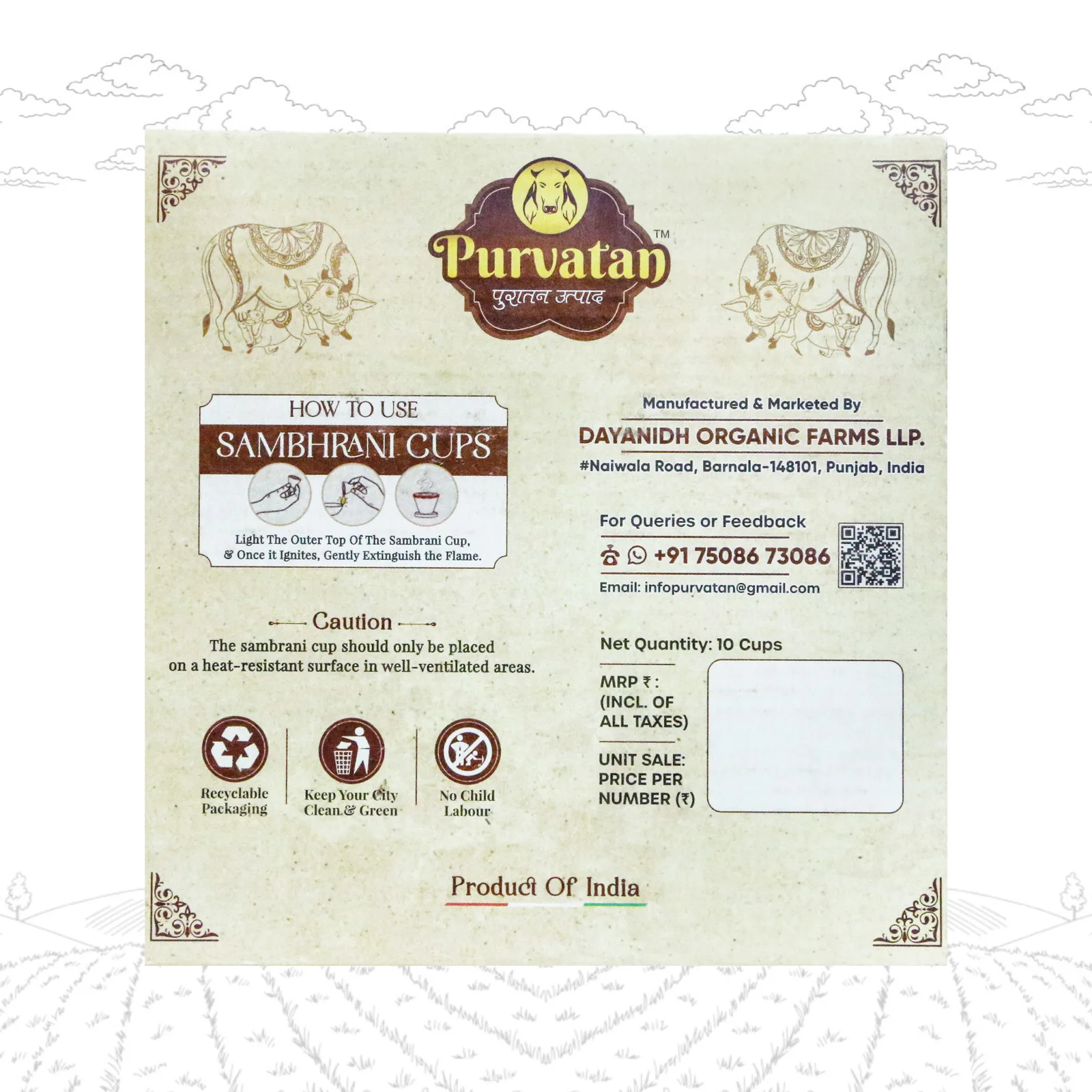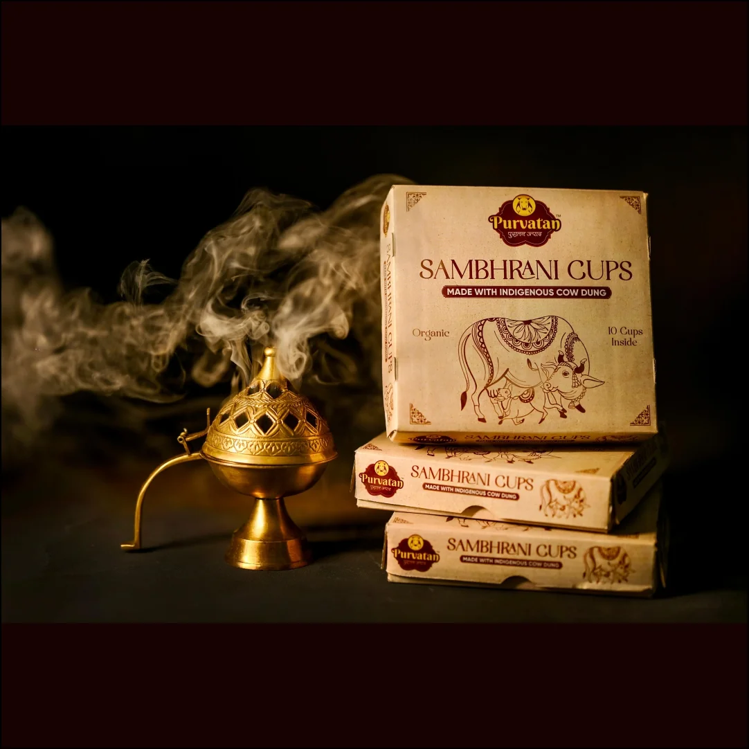 Our Sambrani Cups are handcrafted using Desi cow dung, herbs, natural powders, and pure resins like Loban and Guggul. The base is shaped into cups and filled with a fragrant herbal blend soaked in essential oils. These cups, when lit, emit a rich, purifying smoke that calms the mind, purifies the air, and brings a divine atmosphere to your home.